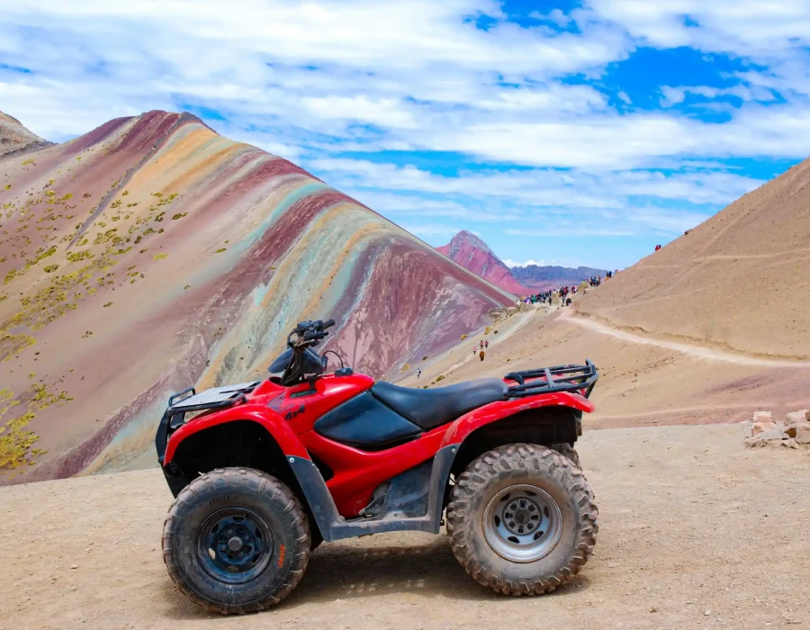 Vive la aventura de la Montaña de Colores en Cuatrimoto. Disfruta de un recorrido emocionante en ATV por paisajes andinos, admirando el majestuoso Nevado Ausangate y la belleza natural de la región. Finaliza con una caminata corta hacia la icónica Montaña de Colores y tiempo para fotos y exploración. Este tour combina adrenalina, naturaleza y cultura local.