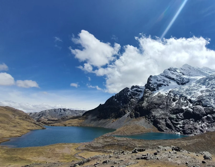 Desde allí, comenzaremos la caminata hacia las impresionantes lagunas de Ausangate, incluyendo Azulcocha, Otorongo, Pucacocha, Alqacocha y Q’omercocha. Durante el recorrido, admiraremos las majestuosas montañas Ausangate (6,834 m), Mariposa (5,842 m), Jampa (5,500 m), Pucapunta (5,740 m), Caracol (5,625 m), Tinke (5,300 m) y toda la Cordillera de Qayangate. También podremos observar aves andinas, alpacas, llamas, vizcachas y, con suerte, al majestuoso cóndor andino.